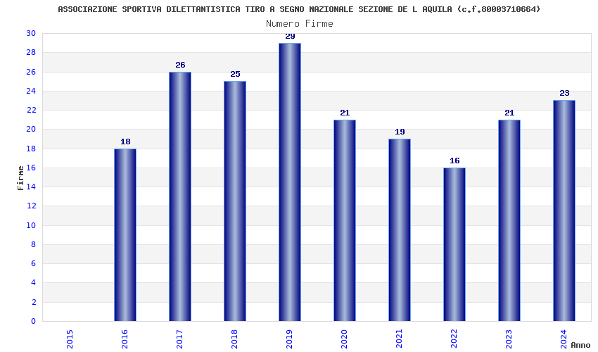 | Anno | Firme | Importi | Media | Naz. | Reg. | Prov. | Comu. |