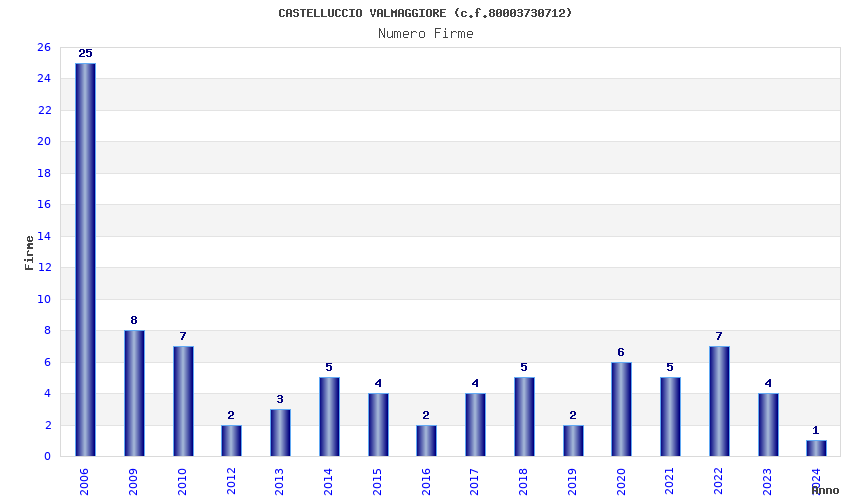 Anno Firme Importi Media Naz. Reg. Prov. Comu.