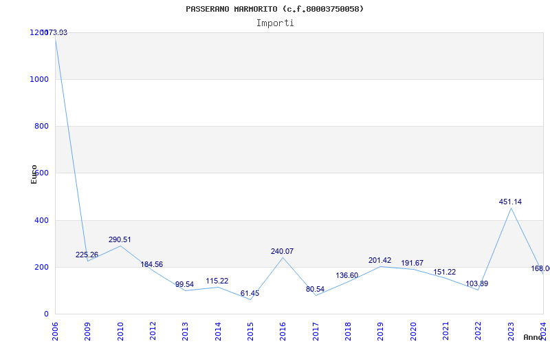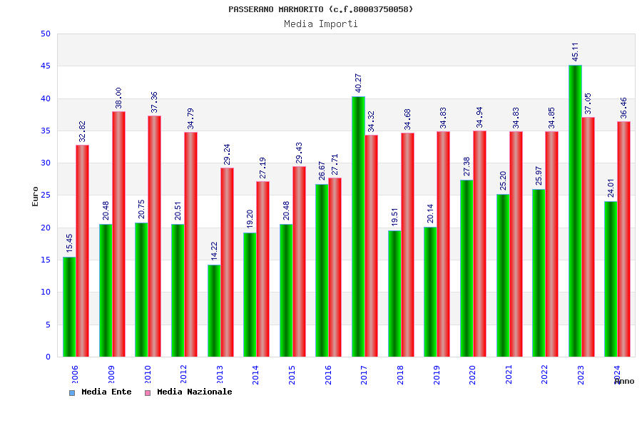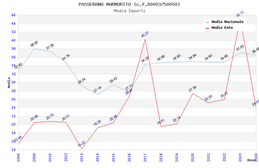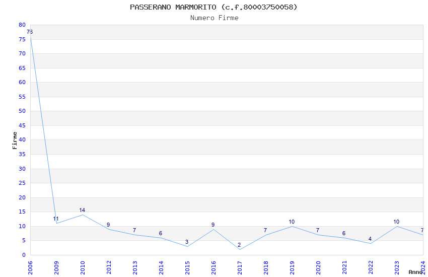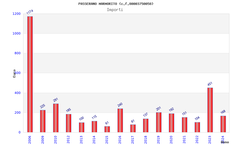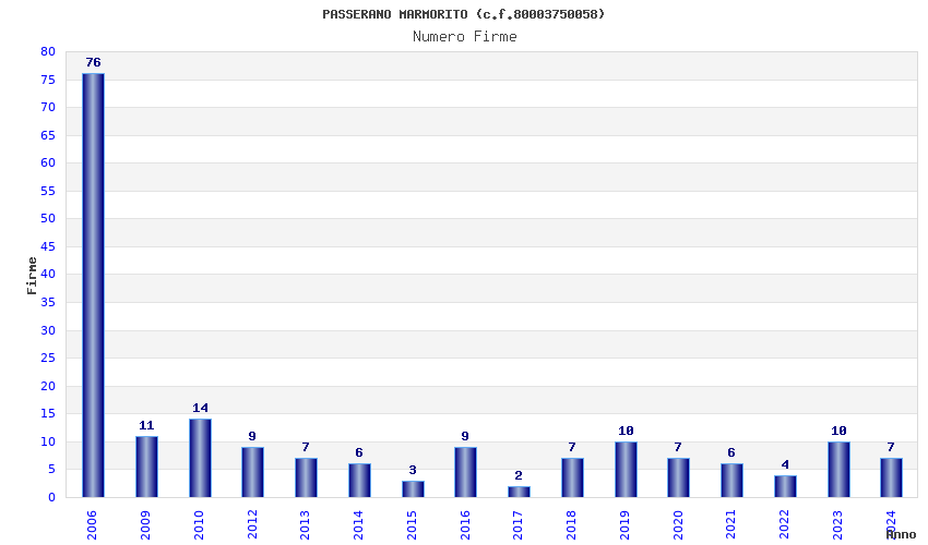 | Anno | Firme | Importi | Media | Naz. | Reg. | Prov. | Comu. |
