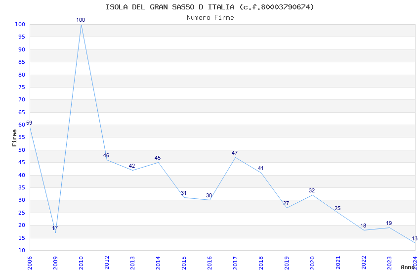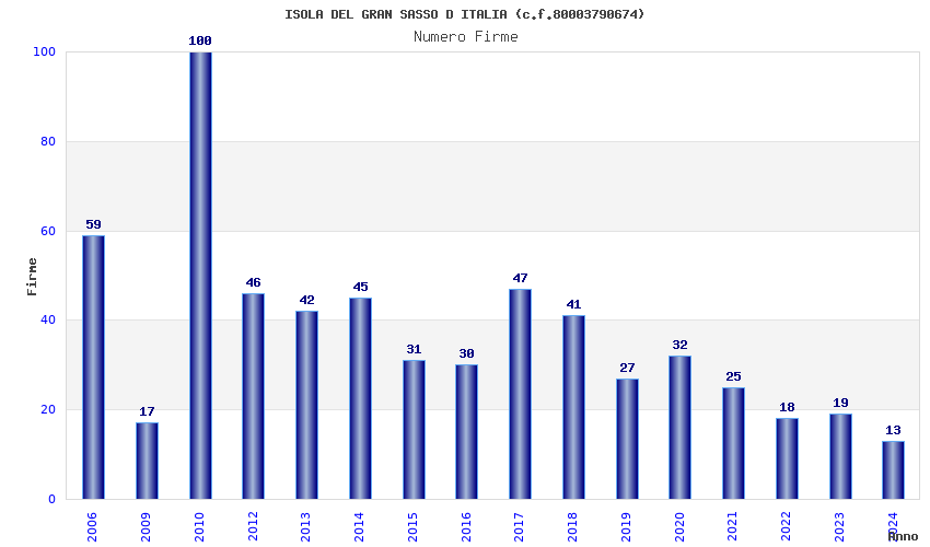 | Anno | Firme | Importi | Media | Naz. | Reg. | Prov. | Comu. |