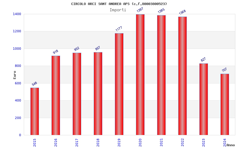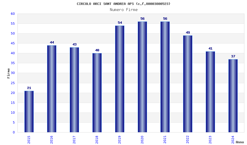 | Anno | Firme | Importi | Media | Naz. | Reg. | Prov. | Comu. |