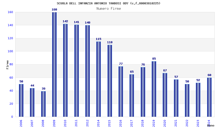 | Anno | Firme | Importi | Media | Naz. | Reg. | Prov. | Comu. |