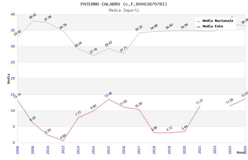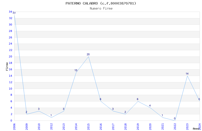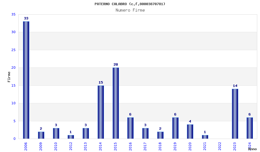 | Anno | Firme | Importi | Media | Naz. | Reg. | Prov. | Comu. |