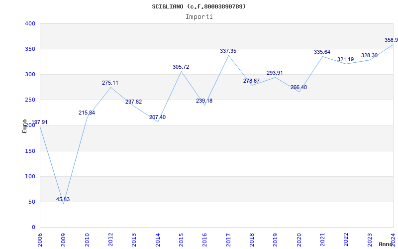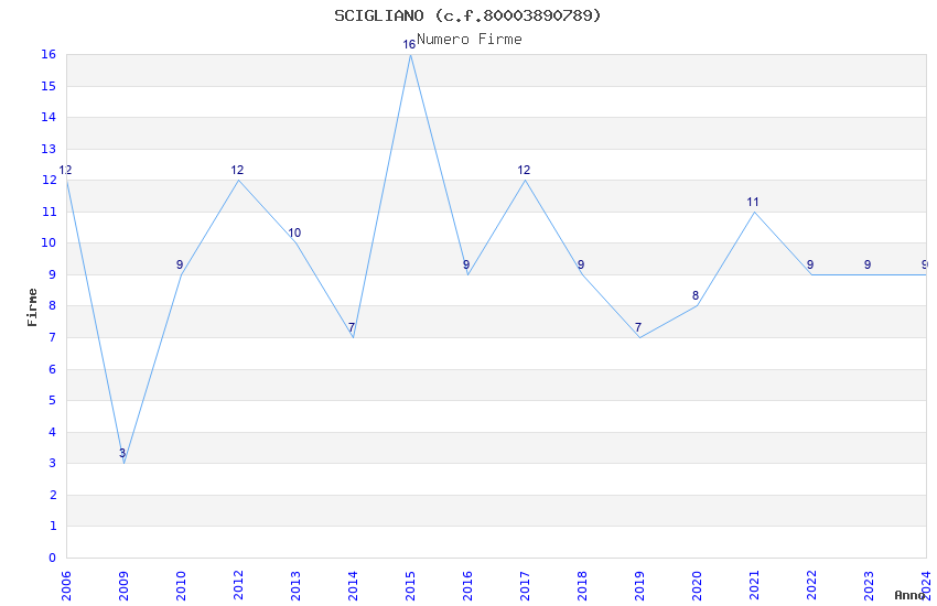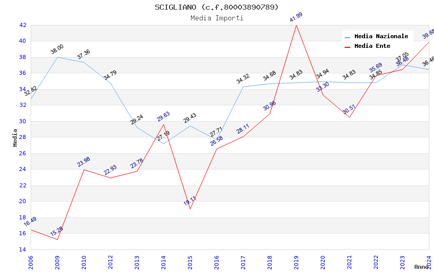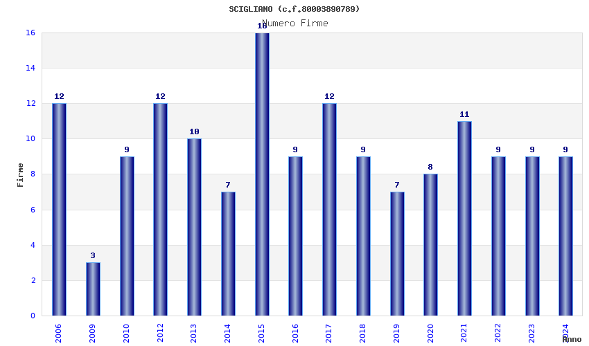 | Anno | Firme | Importi | Media | Naz. | Reg. | Prov. | Comu. |