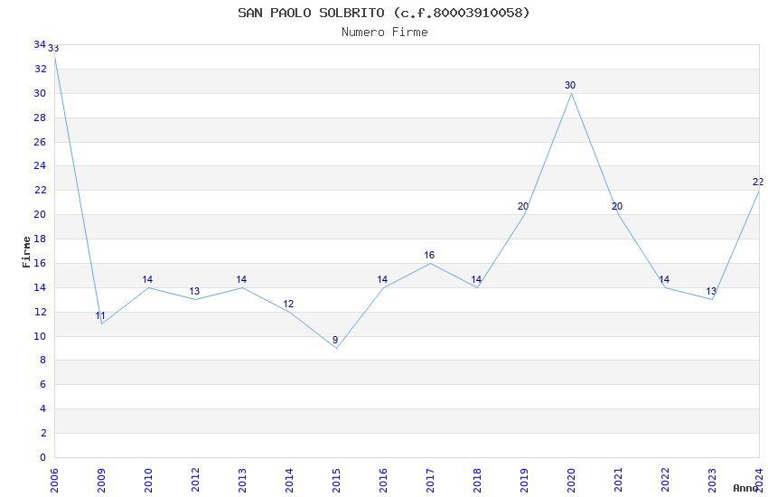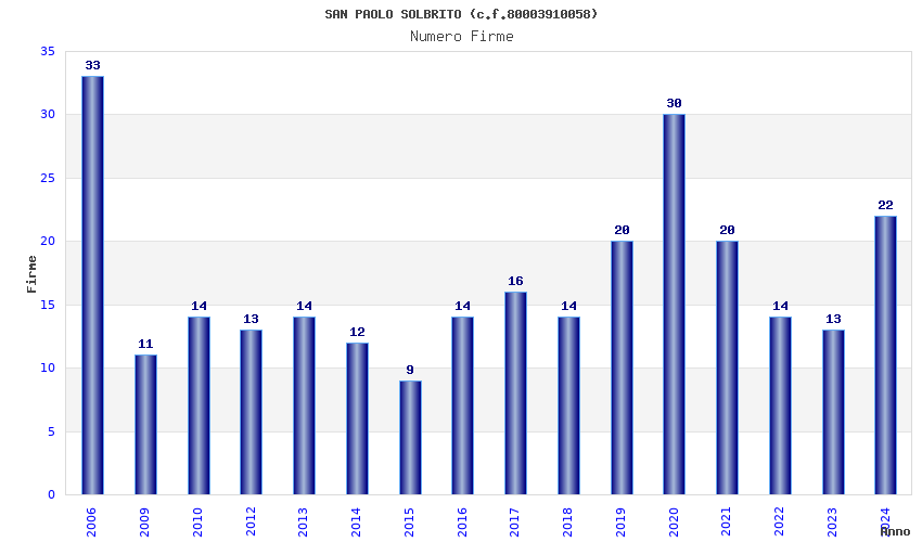 | Anno | Firme | Importi | Media | Naz. | Reg. | Prov. | Comu. |