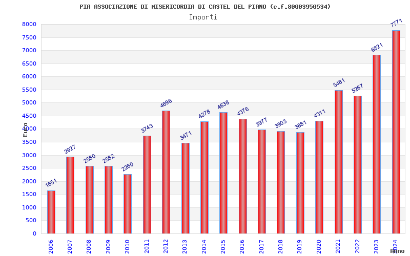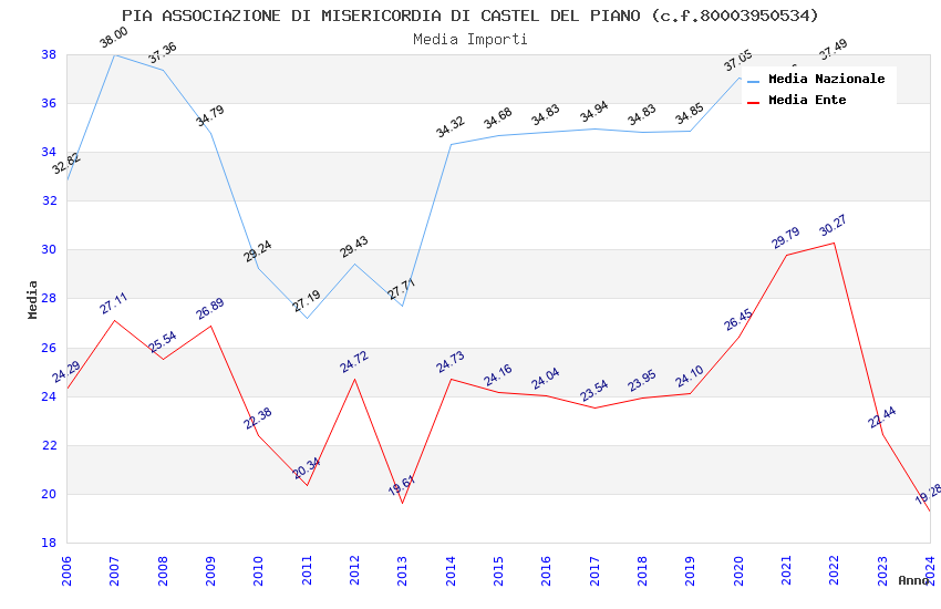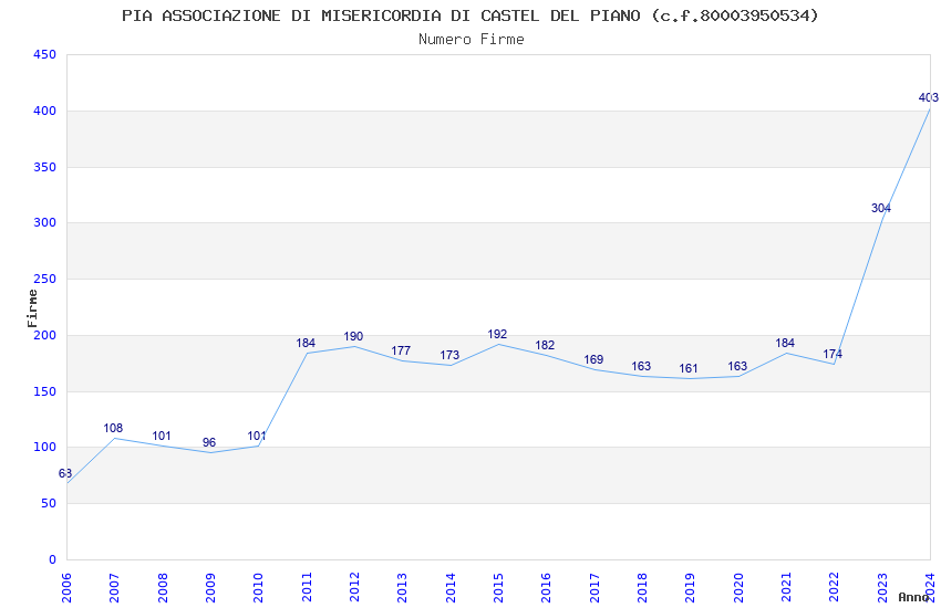 | Anno | Firme | Importi | Media | Naz. | Reg. | Prov. | Comu. |