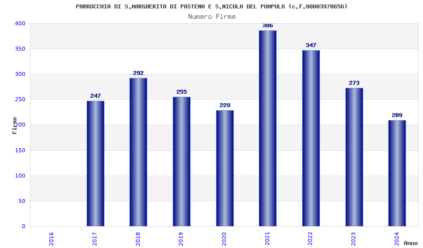 | Anno | Firme | Importi | Media | Naz. | Reg. | Prov. | Comu. |