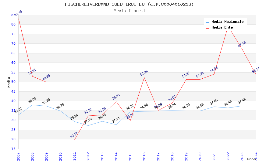 | Anno | Firme | Importi | Media | Naz. | Reg. | Prov. | Comu. |