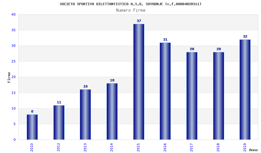 | Anno | Firme | Importi | Media | Naz. | Reg. | Prov. | Comu. |