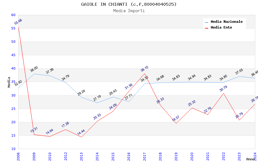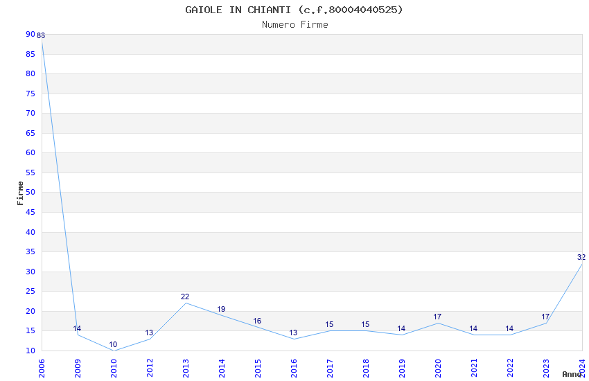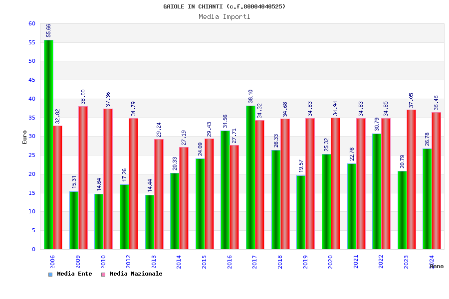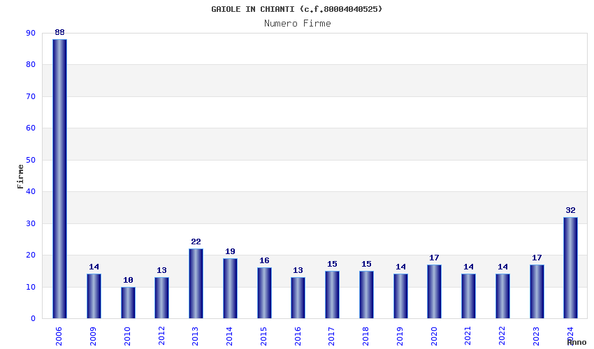 | Anno | Firme | Importi | Media | Naz. | Reg. | Prov. | Comu. |