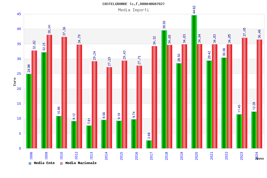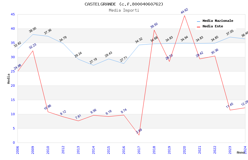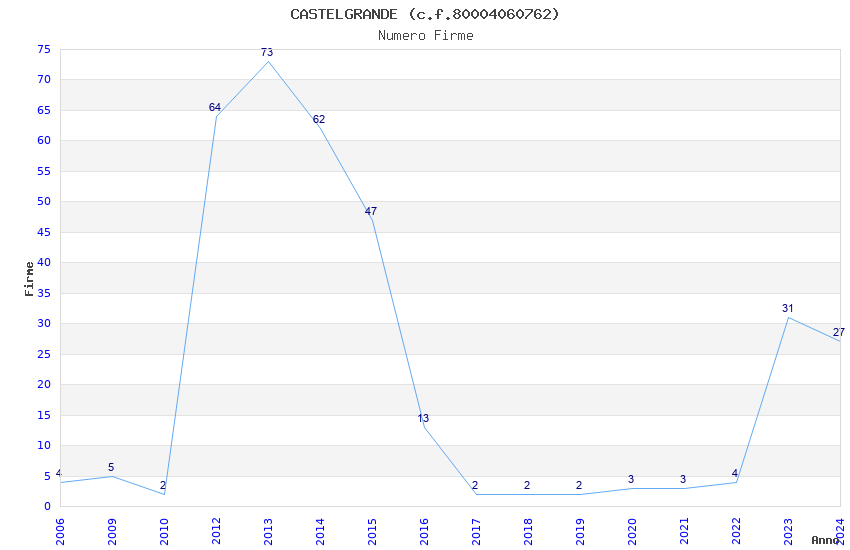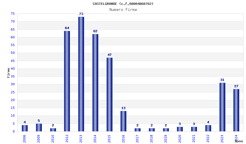 | Anno | Firme | Importi | Media | Naz. | Reg. | Prov. | Comu. |