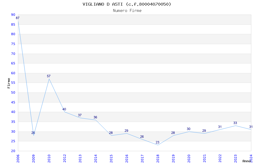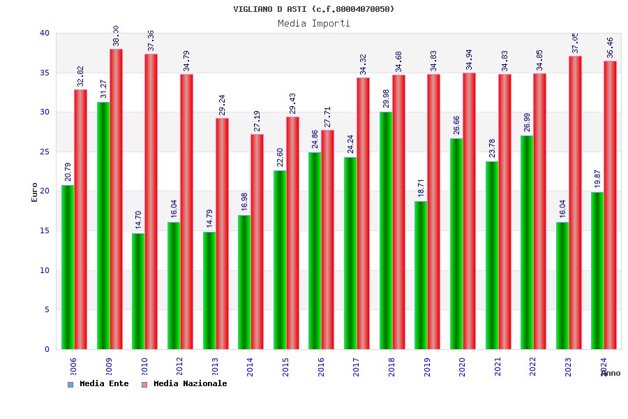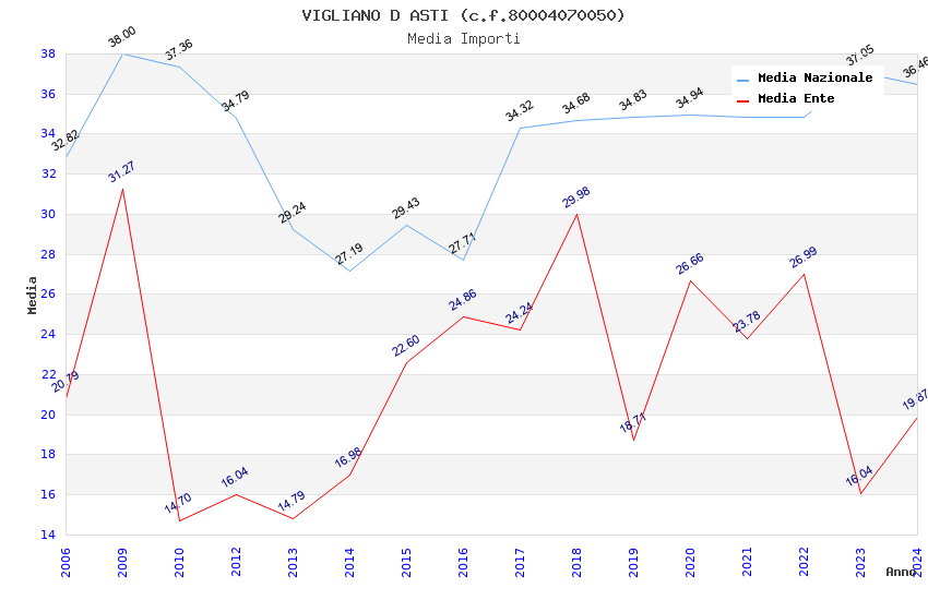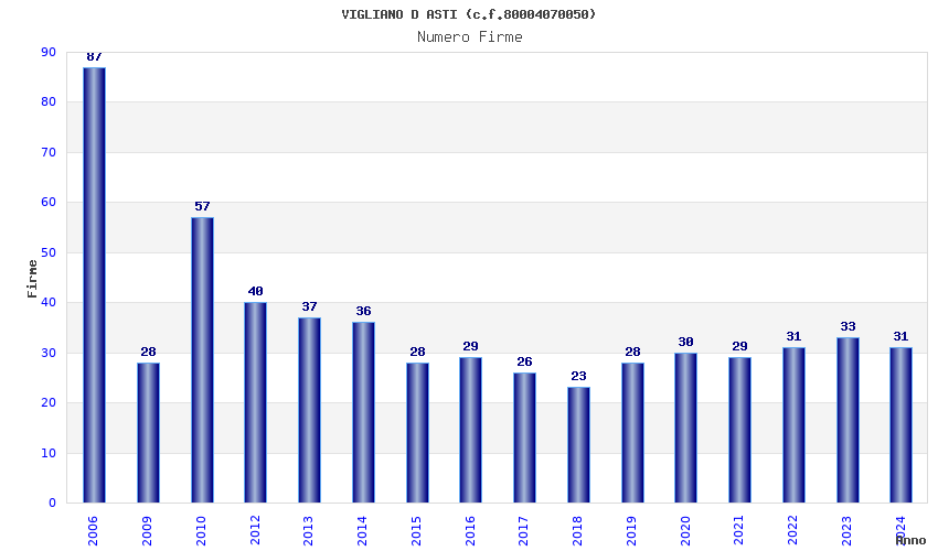 | Anno | Firme | Importi | Media | Naz. | Reg. | Prov. | Comu. |