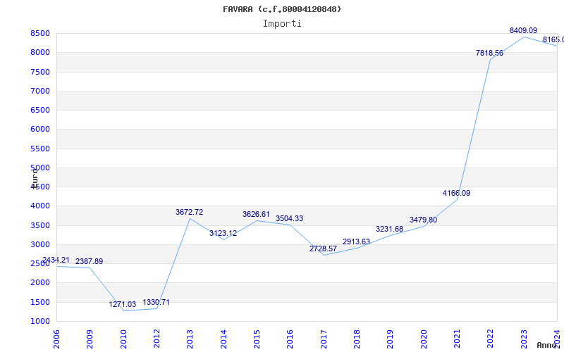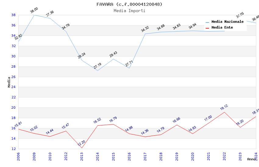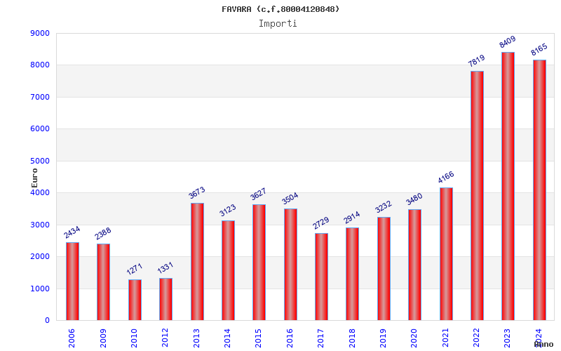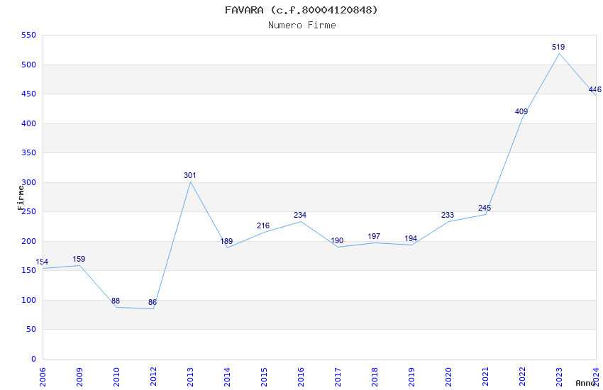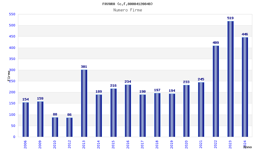 | Anno | Firme | Importi | Media | Naz. | Reg. | Prov. | Comu. |