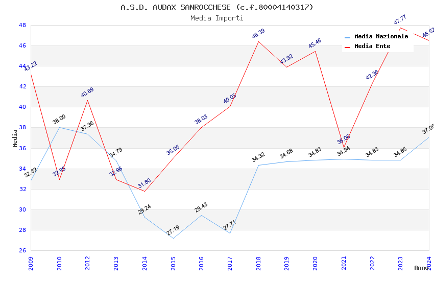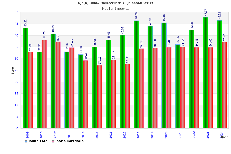 | Anno | Firme | Importi | Media | Naz. | Reg. | Prov. | Comu. |