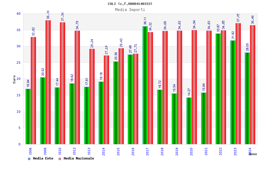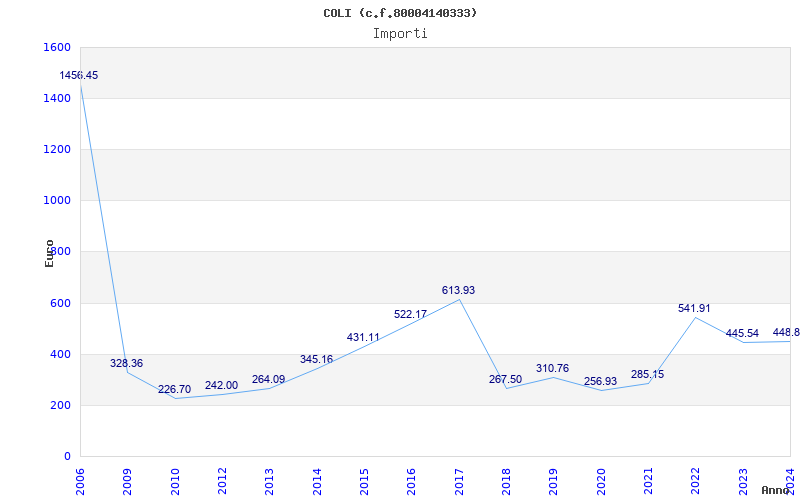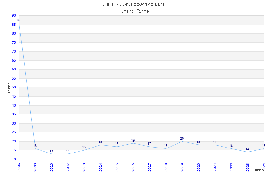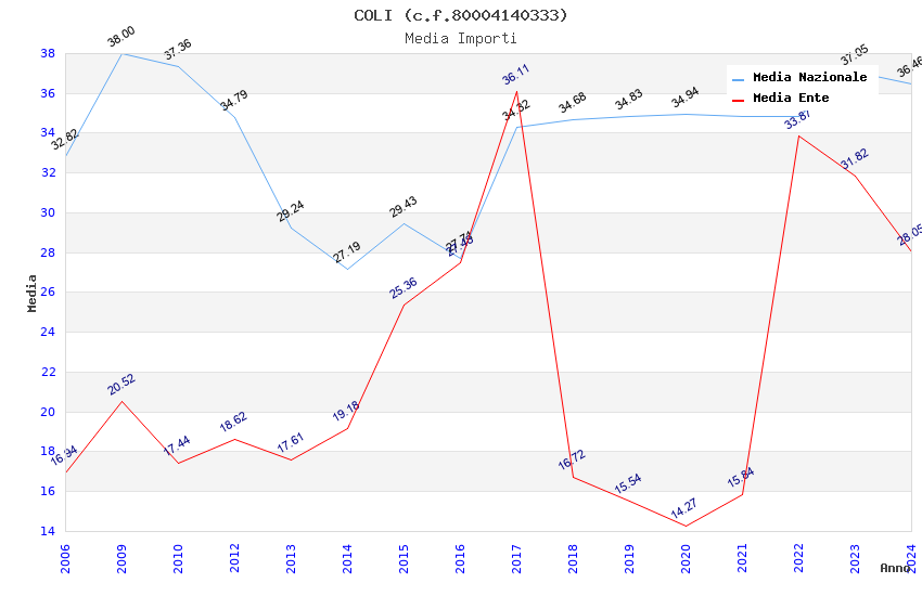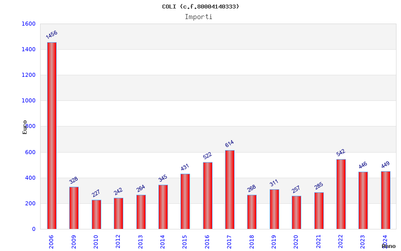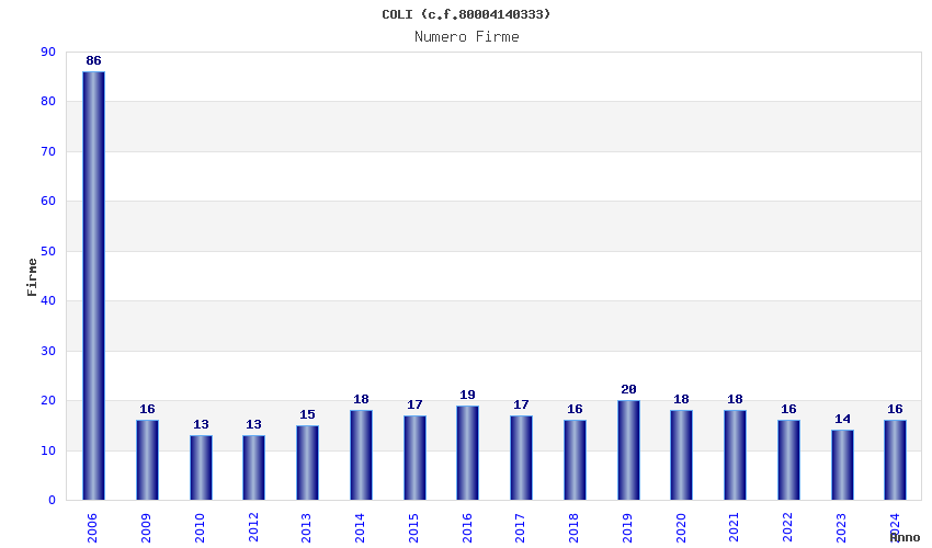 | Anno | Firme | Importi | Media | Naz. | Reg. | Prov. | Comu. |