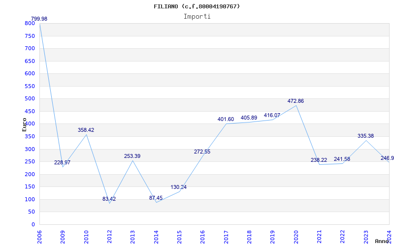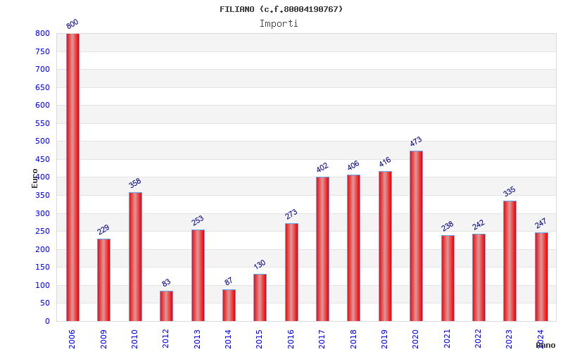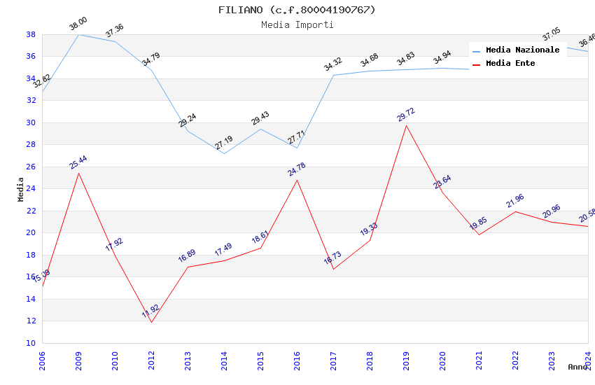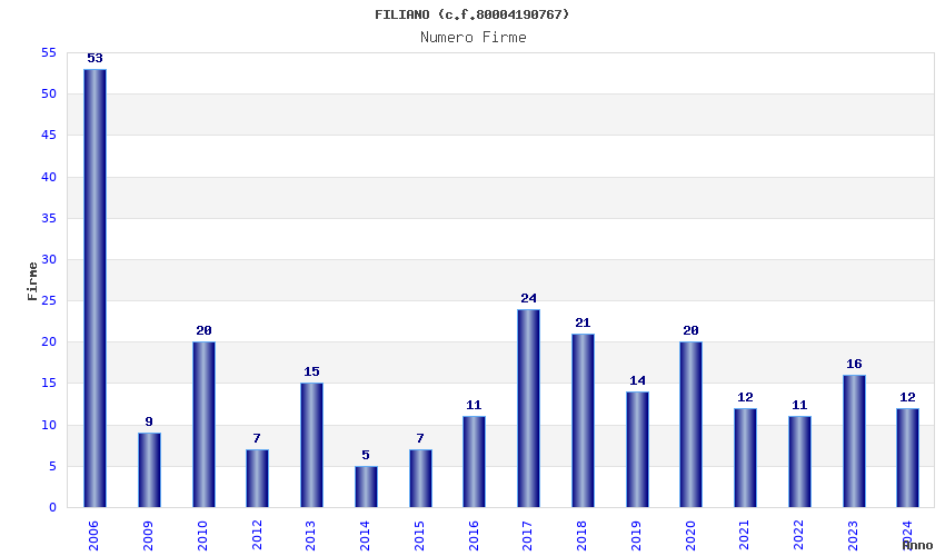 | Anno | Firme | Importi | Media | Naz. | Reg. | Prov. | Comu. |