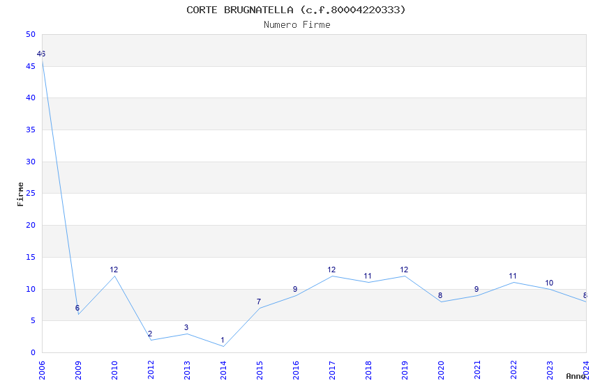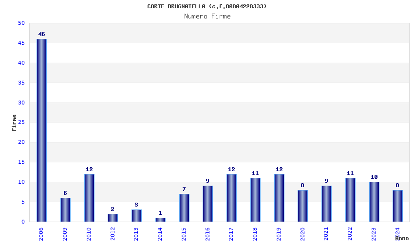 | Anno | Firme | Importi | Media | Naz. | Reg. | Prov. | Comu. |
