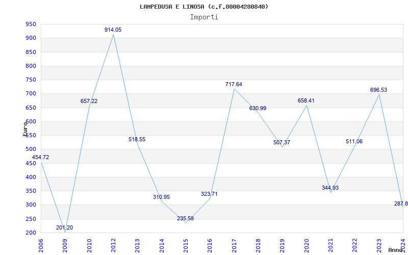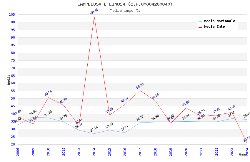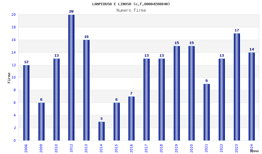 | Anno | Firme | Importi | Media | Naz. | Reg. | Prov. | Comu. |