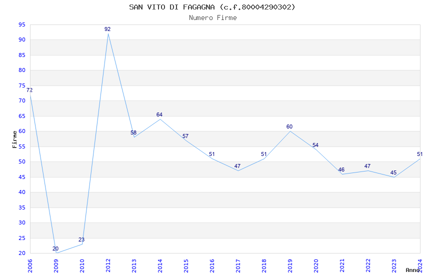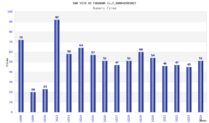 | Anno | Firme | Importi | Media | Naz. | Reg. | Prov. | Comu. |