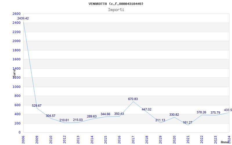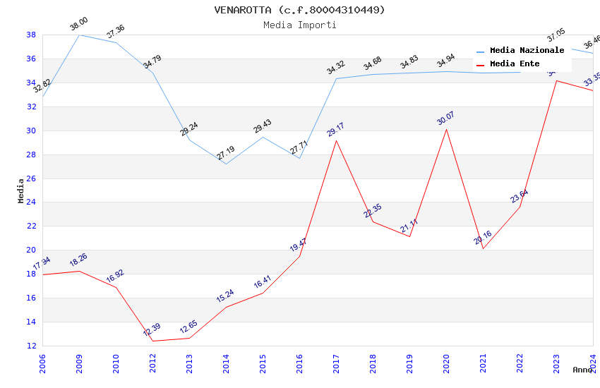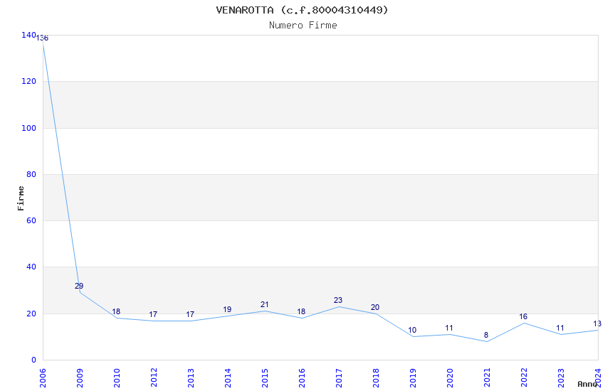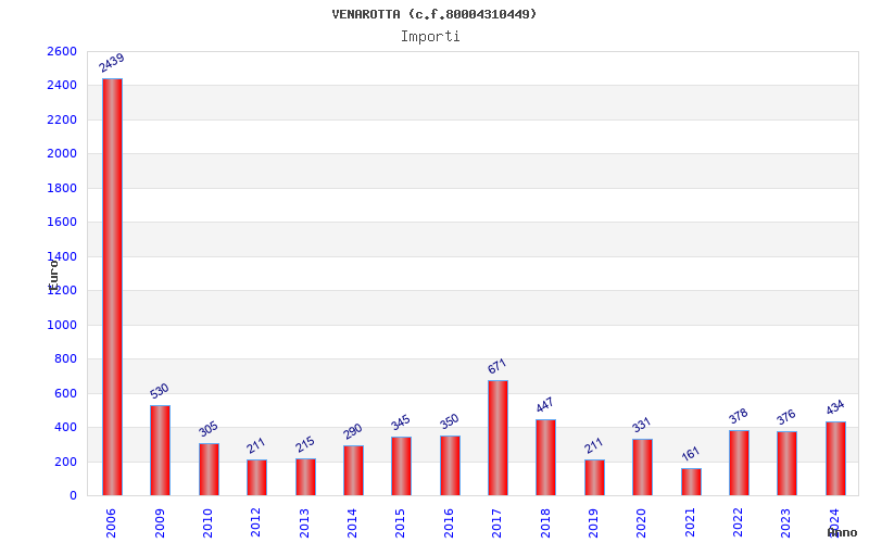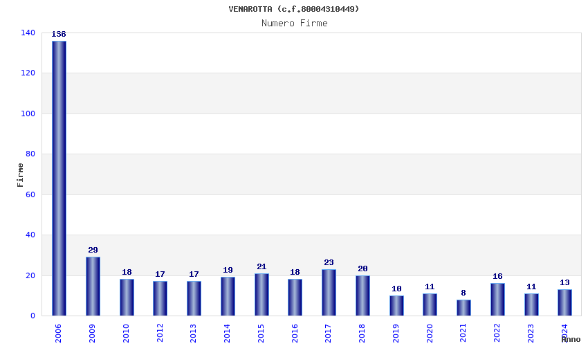 | Anno | Firme | Importi | Media | Naz. | Reg. | Prov. | Comu. |