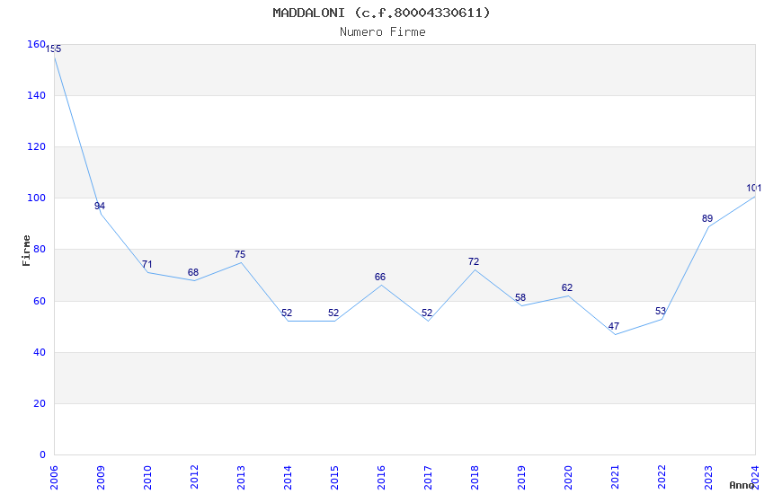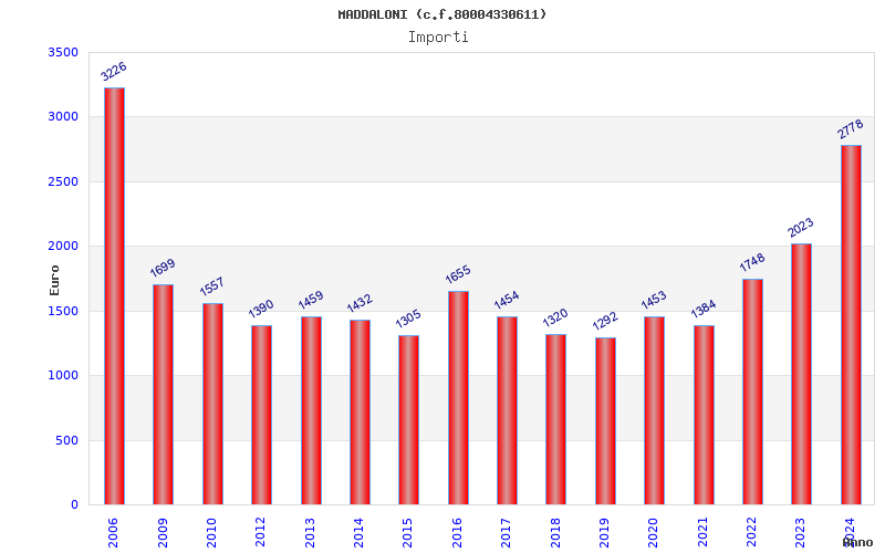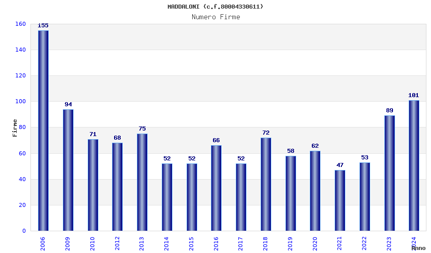 | Anno | Firme | Importi | Media | Naz. | Reg. | Prov. | Comu. |