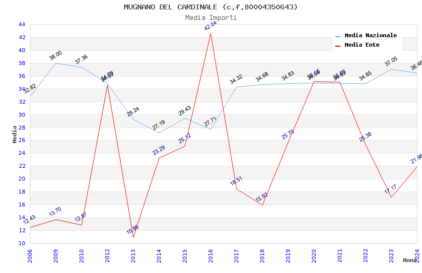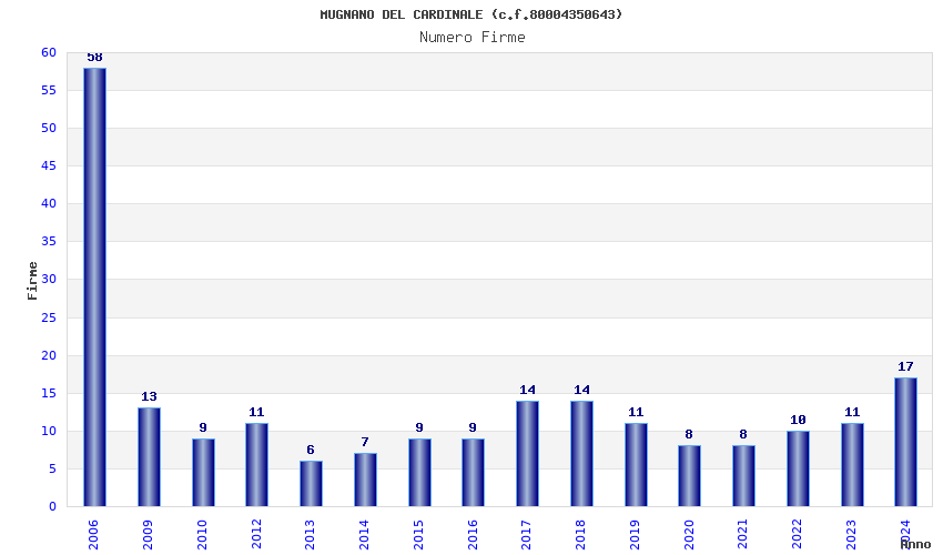 | Anno | Firme | Importi | Media | Naz. | Reg. | Prov. | Comu. |