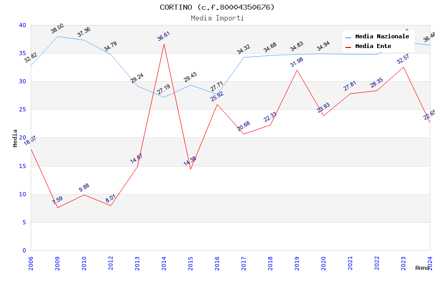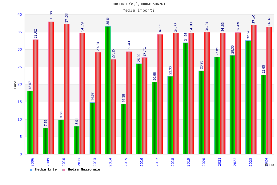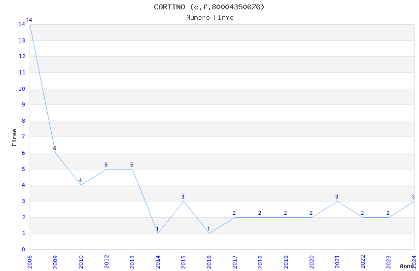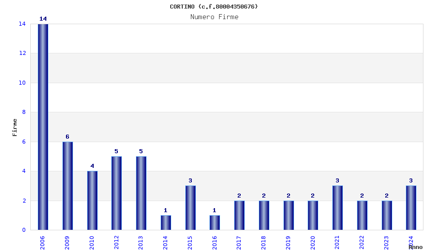 | Anno | Firme | Importi | Media | Naz. | Reg. | Prov. | Comu. |