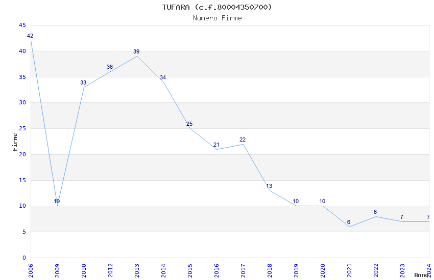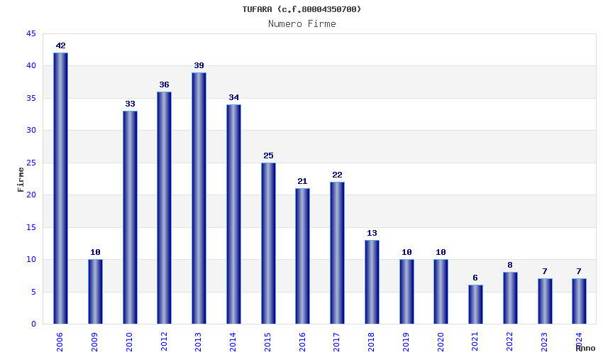 | Anno | Firme | Importi | Media | Naz. | Reg. | Prov. | Comu. |