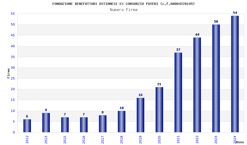 | Anno | Firme | Importi | Media | Naz. | Reg. | Prov. | Comu. |