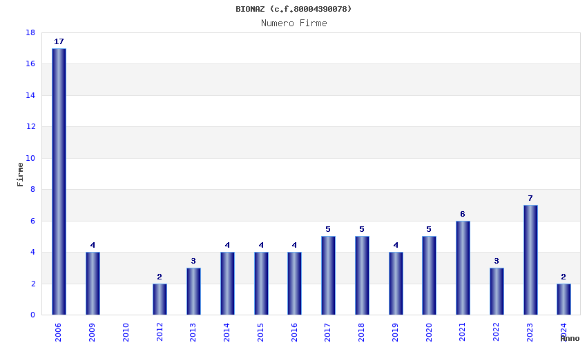 Anno Firme Importi Media Naz. Reg. Prov. Comu.