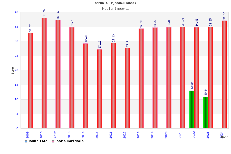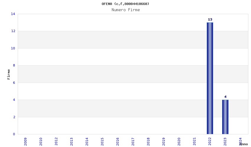 | Anno | Firme | Importi | Media | Naz. | Reg. | Prov. | Comu. |
