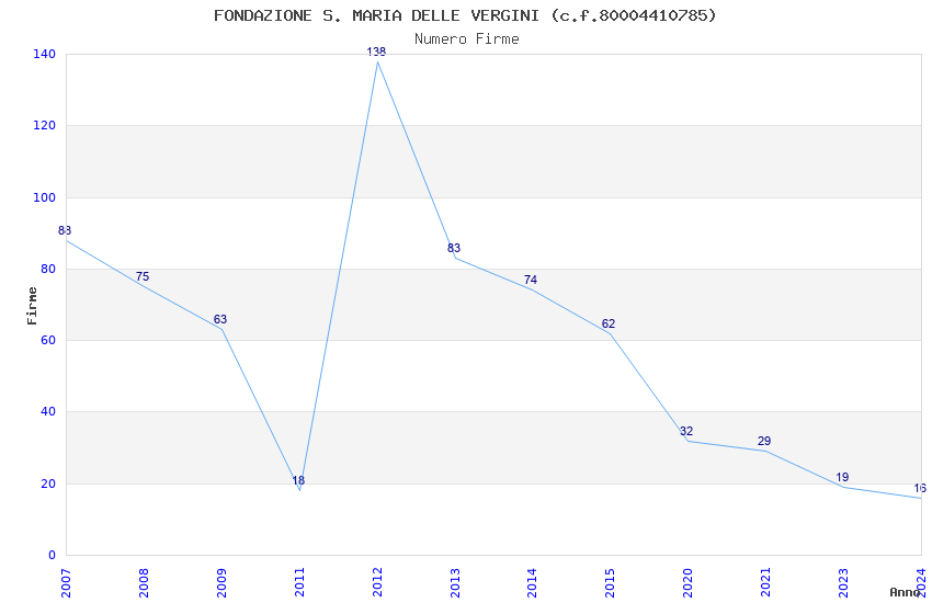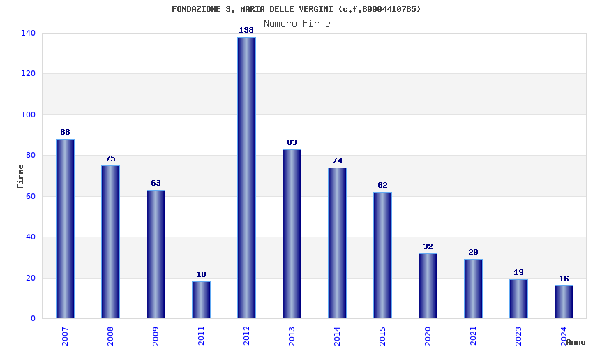 | Anno | Firme | Importi | Media | Naz. | Reg. | Prov. | Comu. |