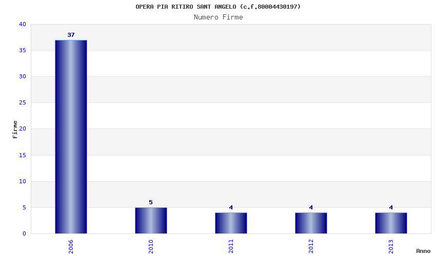 | Anno | Firme | Importi | Media | Naz. | Reg. | Prov. | Comu. |