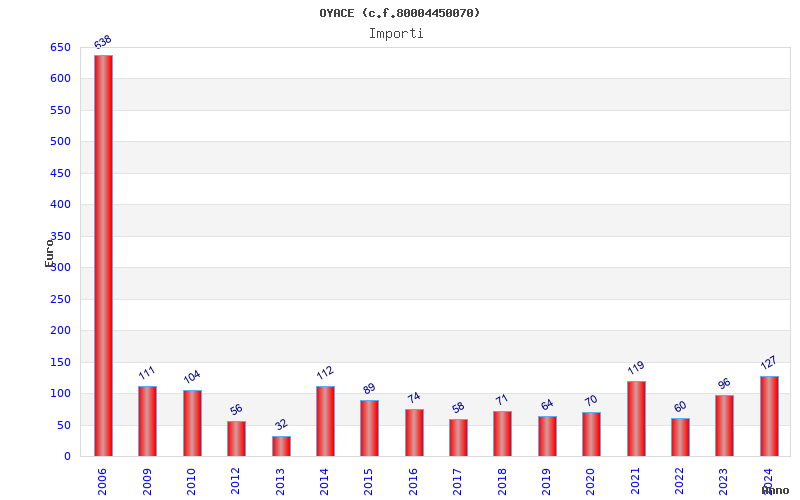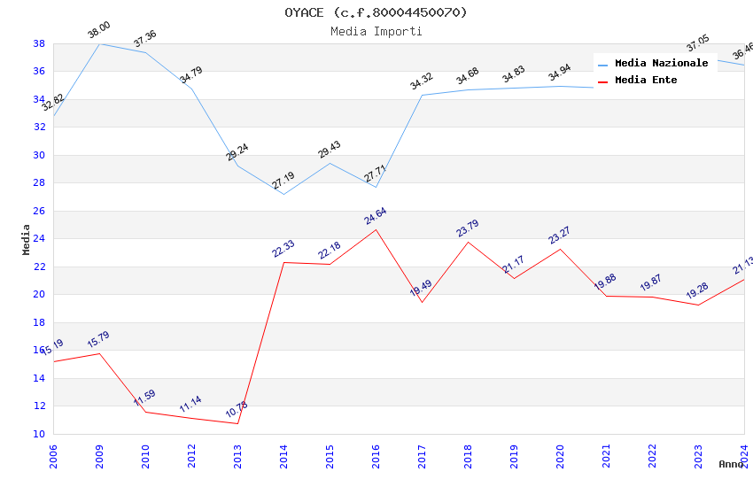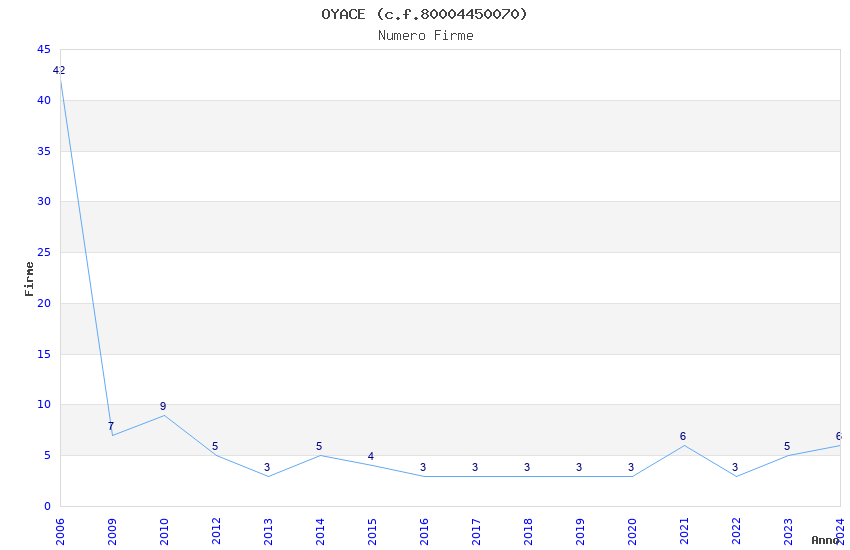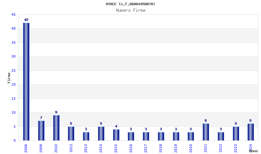 | Anno | Firme | Importi | Media | Naz. | Reg. | Prov. | Comu. |