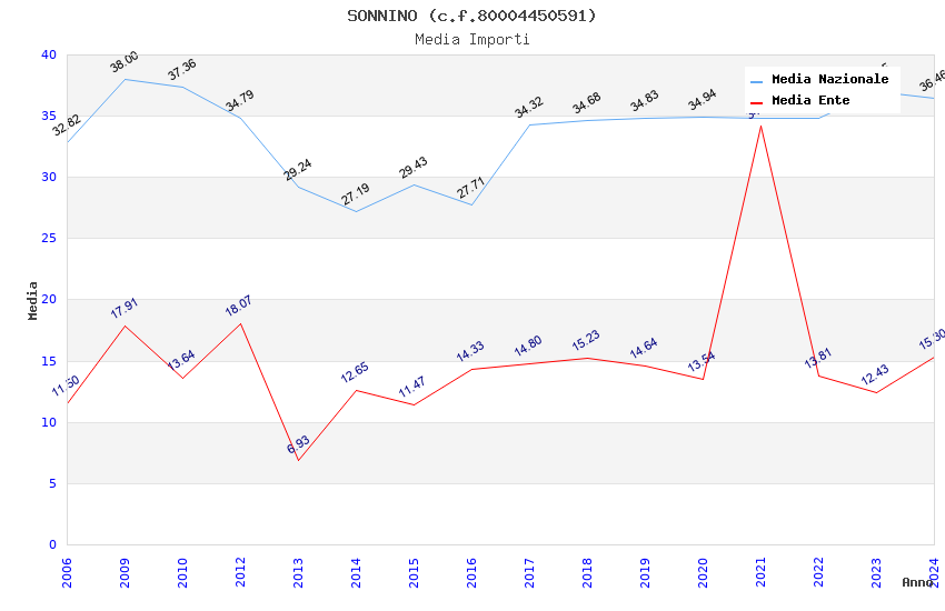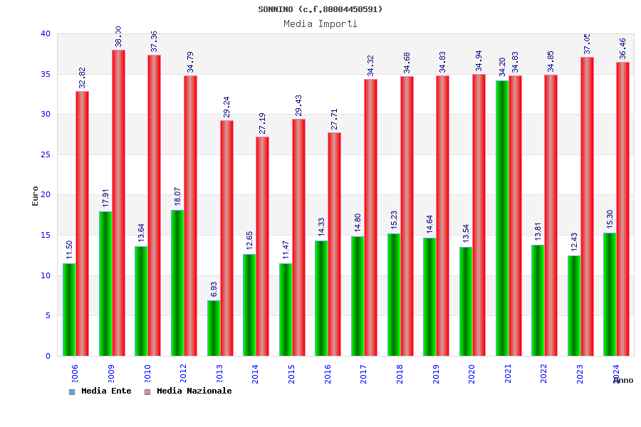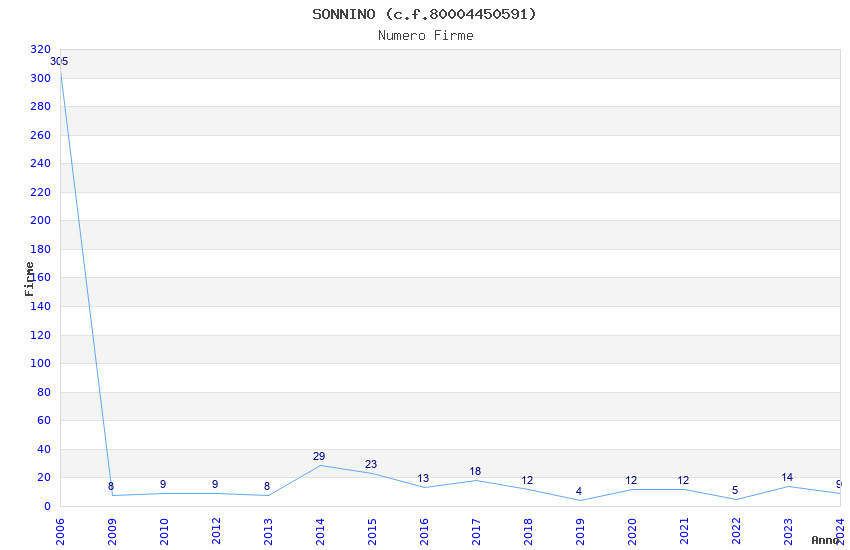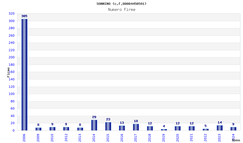 | Anno | Firme | Importi | Media | Naz. | Reg. | Prov. | Comu. |
