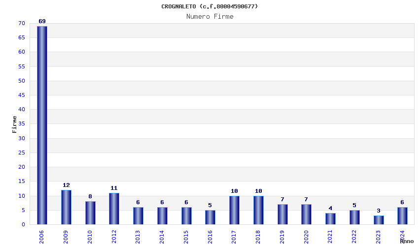 | Anno | Firme | Importi | Media | Naz. | Reg. | Prov. | Comu. |