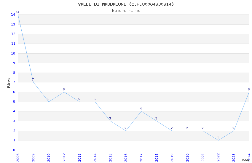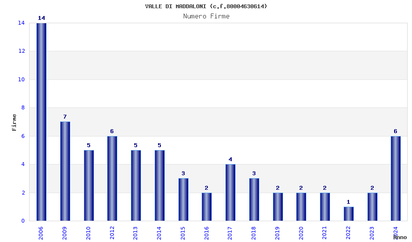 | Anno | Firme | Importi | Media | Naz. | Reg. | Prov. | Comu. |