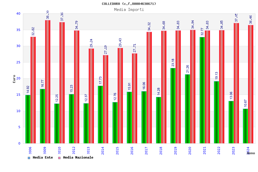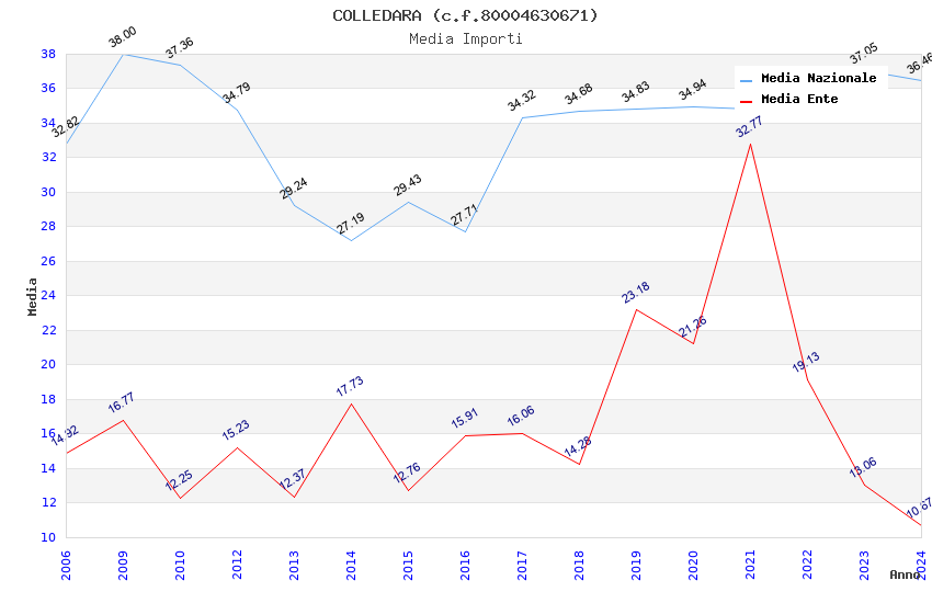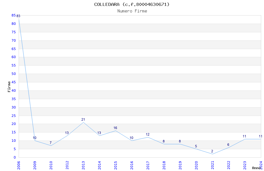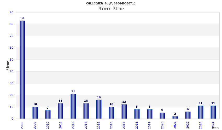 | Anno | Firme | Importi | Media | Naz. | Reg. | Prov. | Comu. |