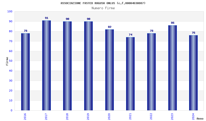 | Anno | Firme | Importi | Media | Naz. | Reg. | Prov. | Comu. |