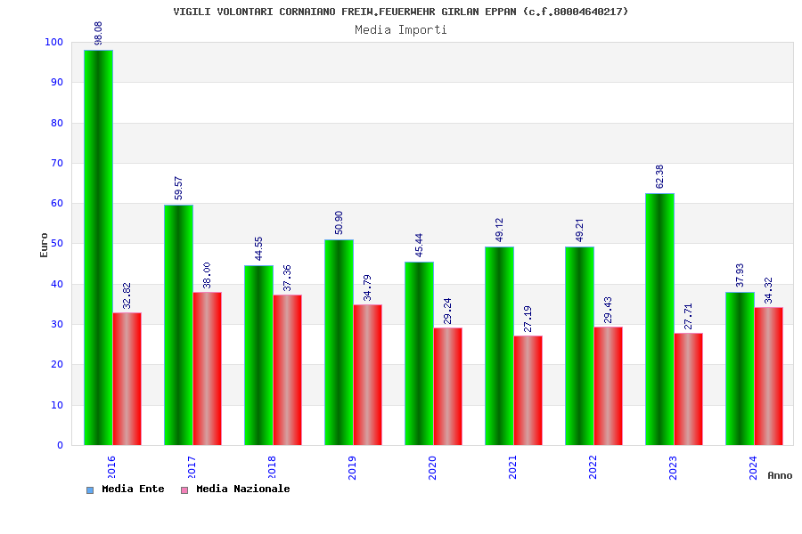 | Anno | Firme | Importi | Media | Naz. | Reg. | Prov. | Comu. |