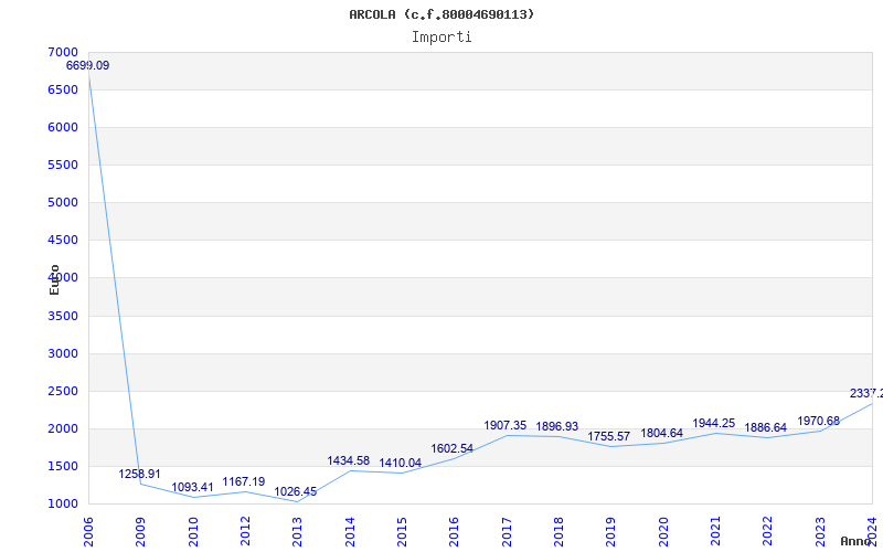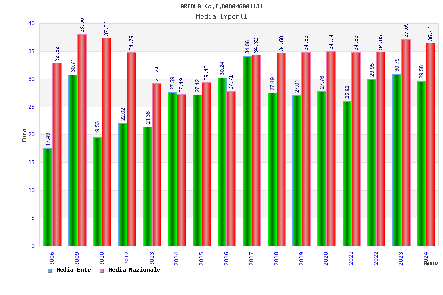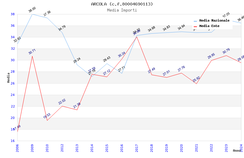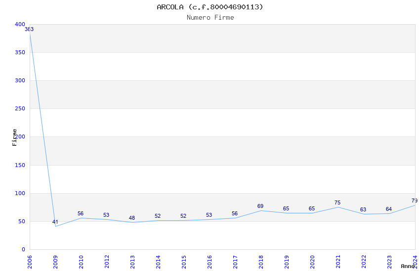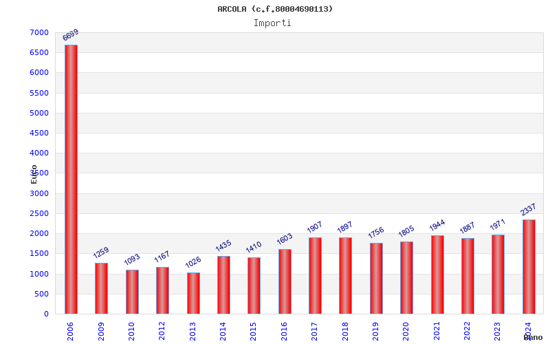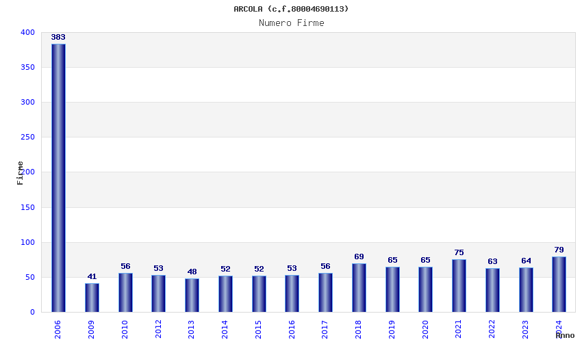 | Anno | Firme | Importi | Media | Naz. | Reg. | Prov. | Comu. |