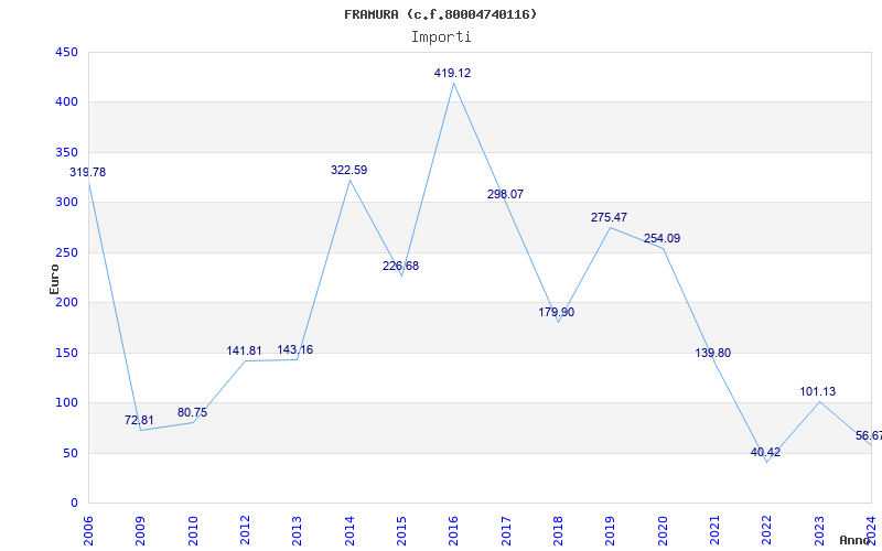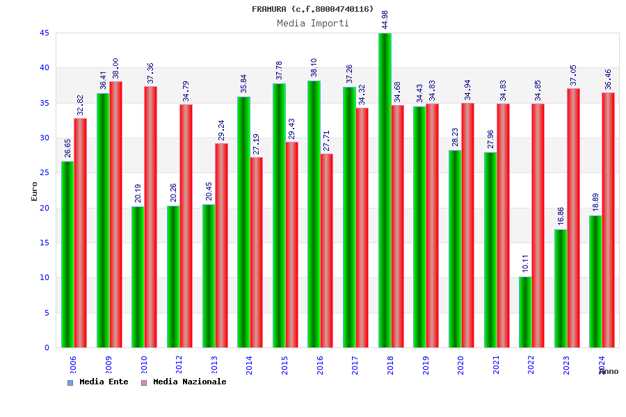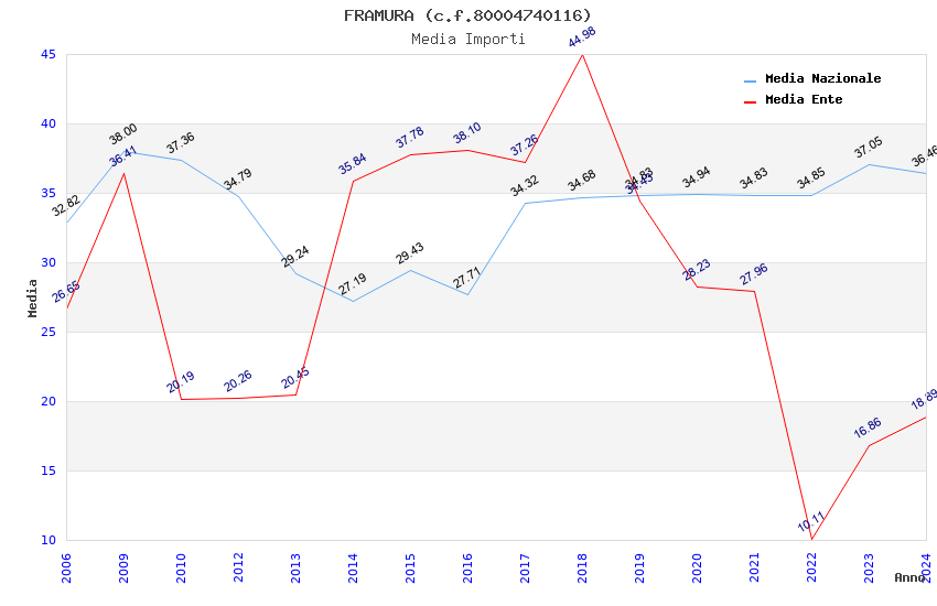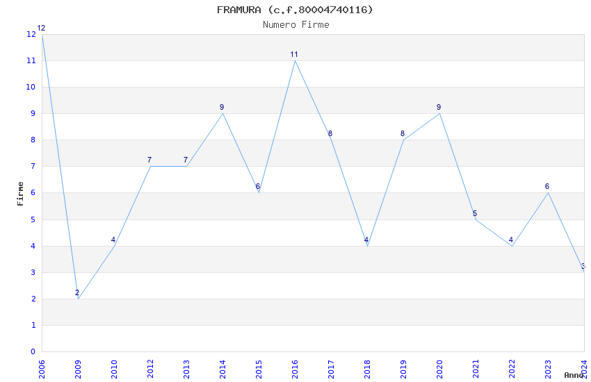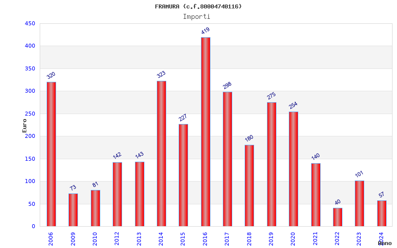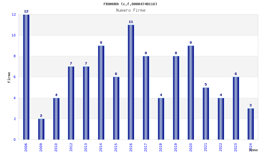 | Anno | Firme | Importi | Media | Naz. | Reg. | Prov. | Comu. |