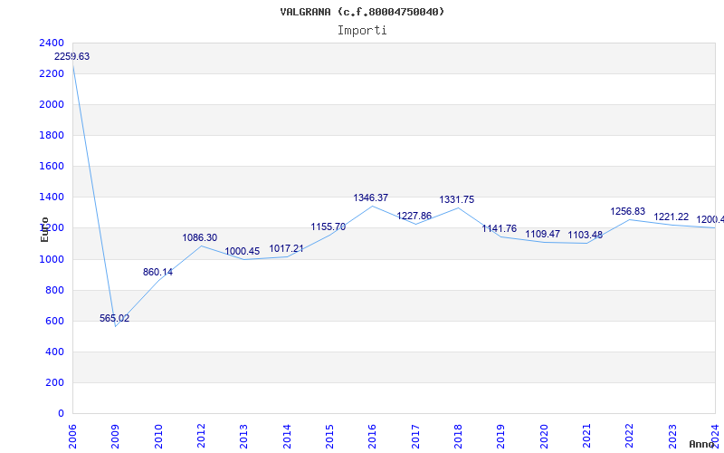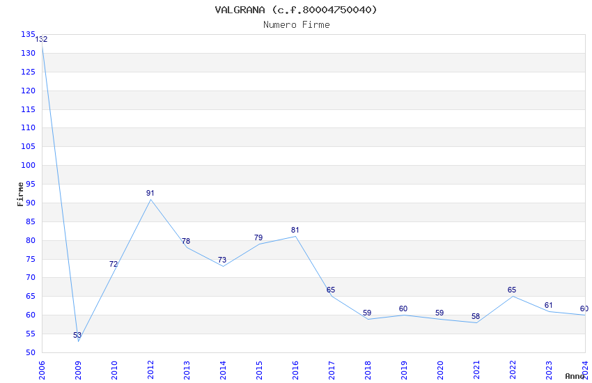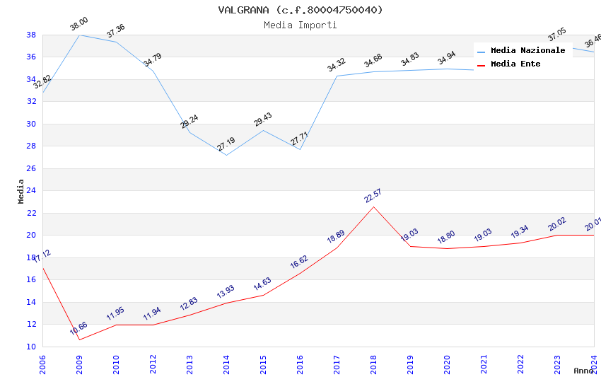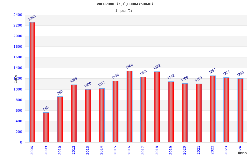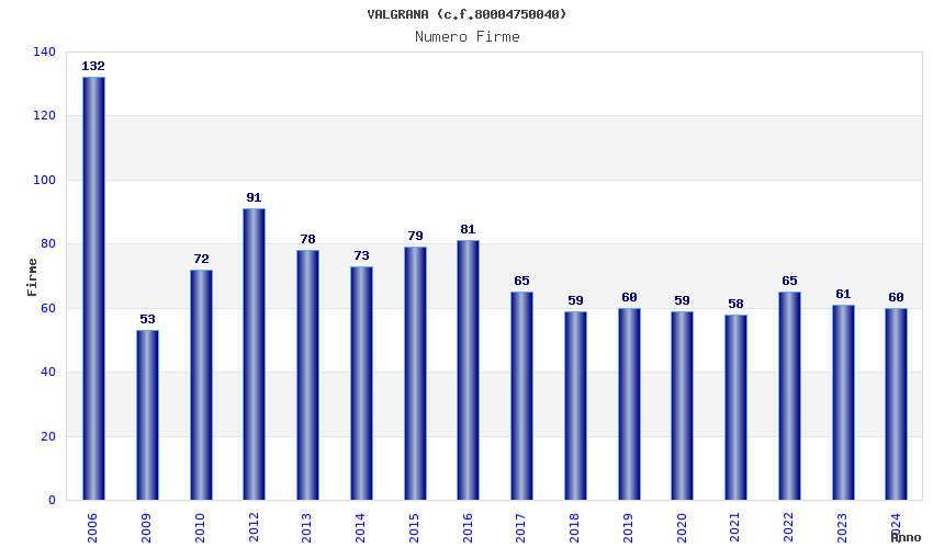 | Anno | Firme | Importi | Media | Naz. | Reg. | Prov. | Comu. |