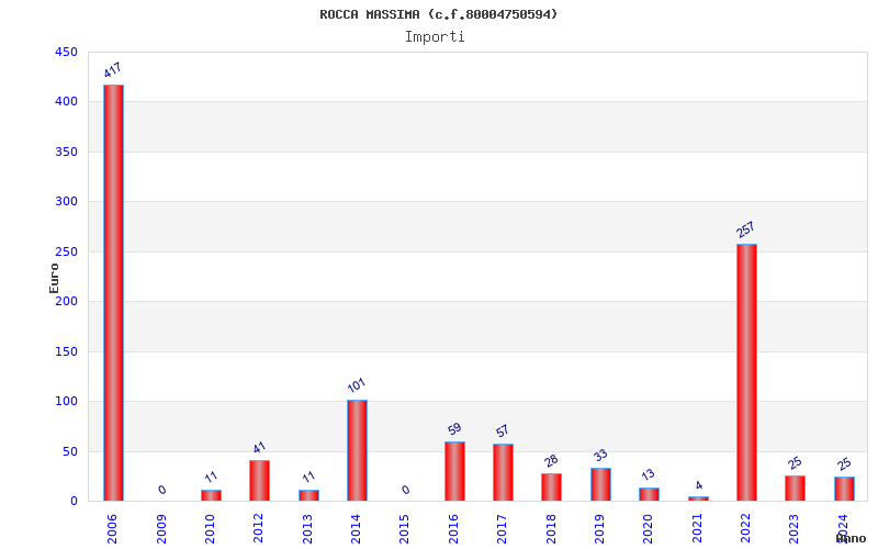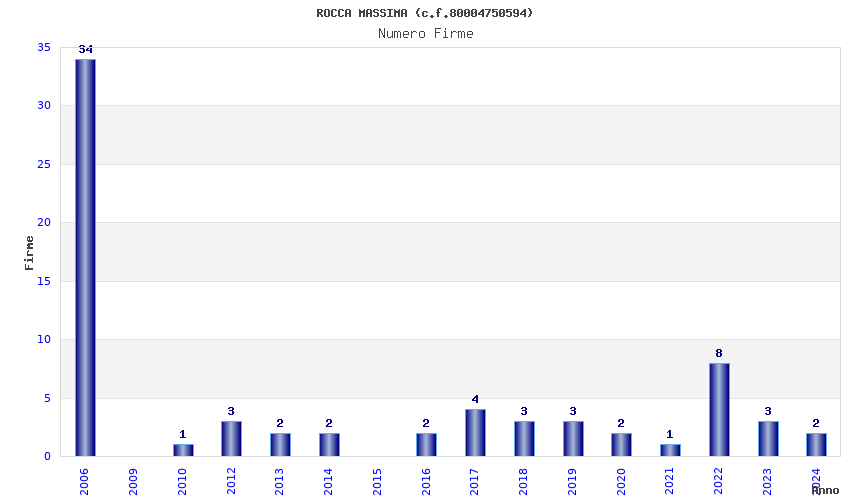 | Anno | Firme | Importi | Media | Naz. | Reg. | Prov. | Comu. |