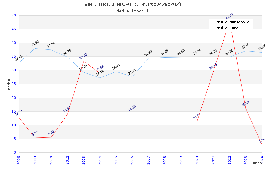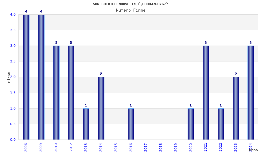| Anno | Firme | Importi | Media | Naz. | Reg. | Prov. | Comu. |