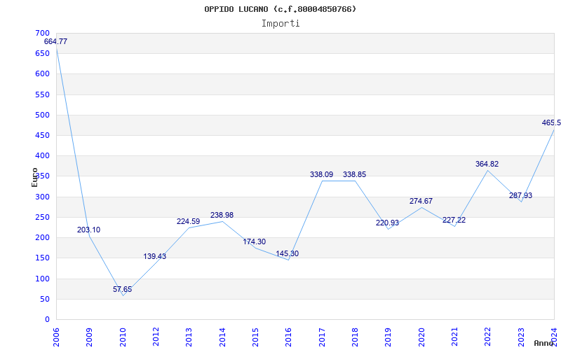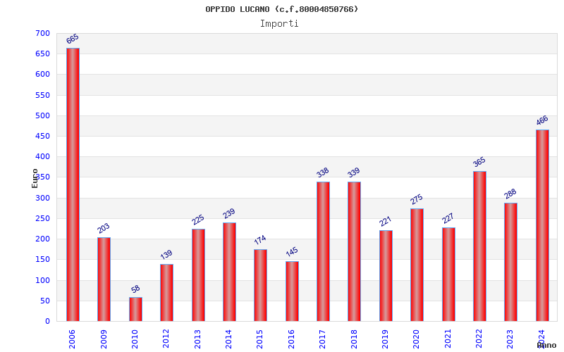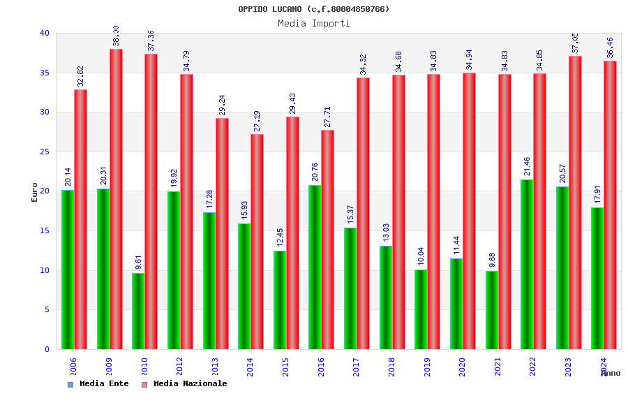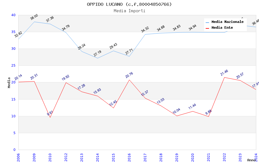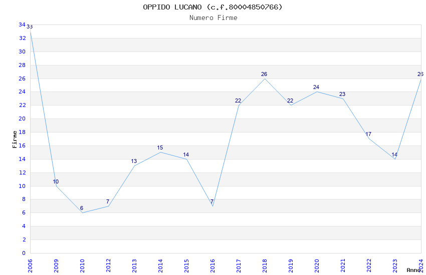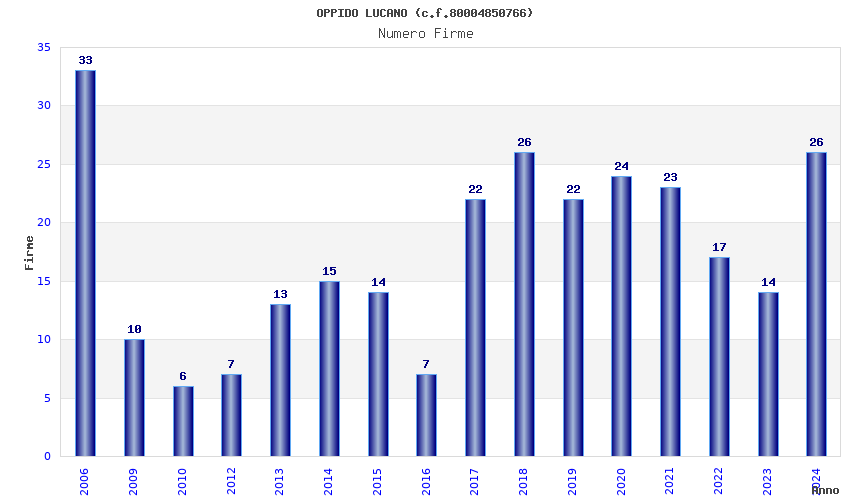 | Anno | Firme | Importi | Media | Naz. | Reg. | Prov. | Comu. |