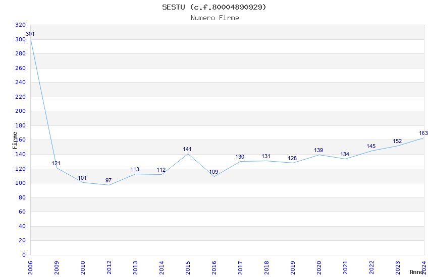 | 2006 | 301 | 5.255,25 | 17,46 | 7.952 | 121 | 59 | 3 |