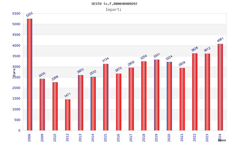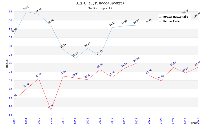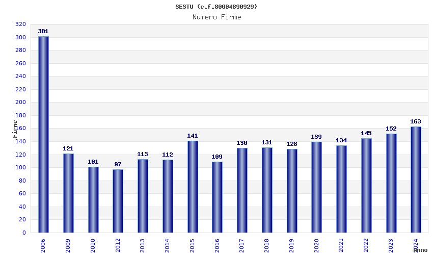 | Anno | Firme | Importi | Media | Naz. | Reg. | Prov. | Comu. |