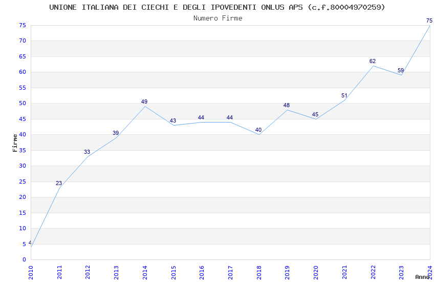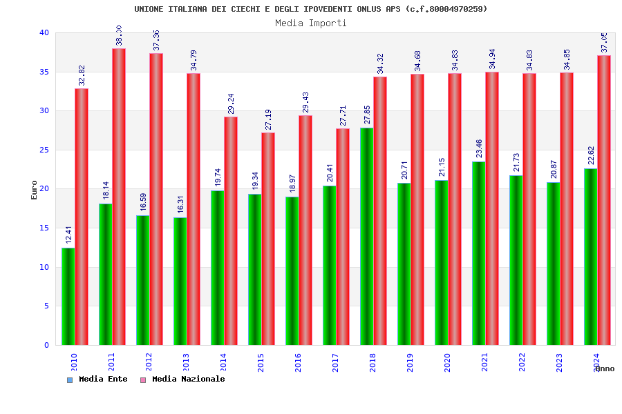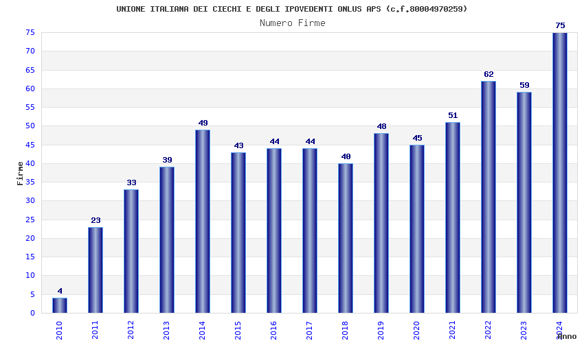 | Anno | Firme | Importi | Media | Naz. | Reg. | Prov. | Comu. |