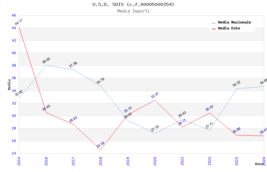 | Anno | Firme | Importi | Media | Naz. | Reg. | Prov. | Comu. |